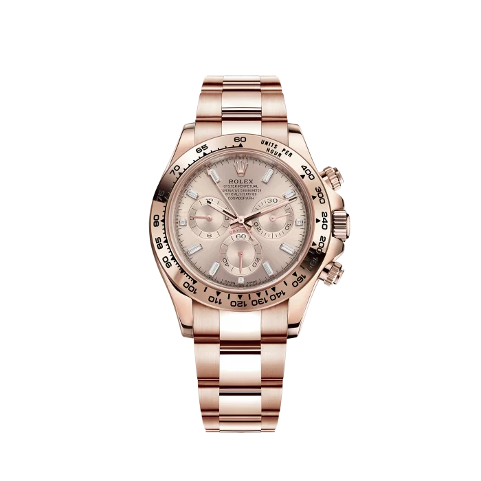 With its tachymetric scale, its three counters and its pushers, the Cosmograph Daytona was designed to be the ultimate timing tool for endurance racing drivers. The bezel features a tachymetric scale to read average speed over a given distance based on elapsed time. This scale offers optimal legibility, making the Cosmograph Daytona the ideal instrument for measuring speeds up to 400 units per hour, expressed in kilometres or miles.